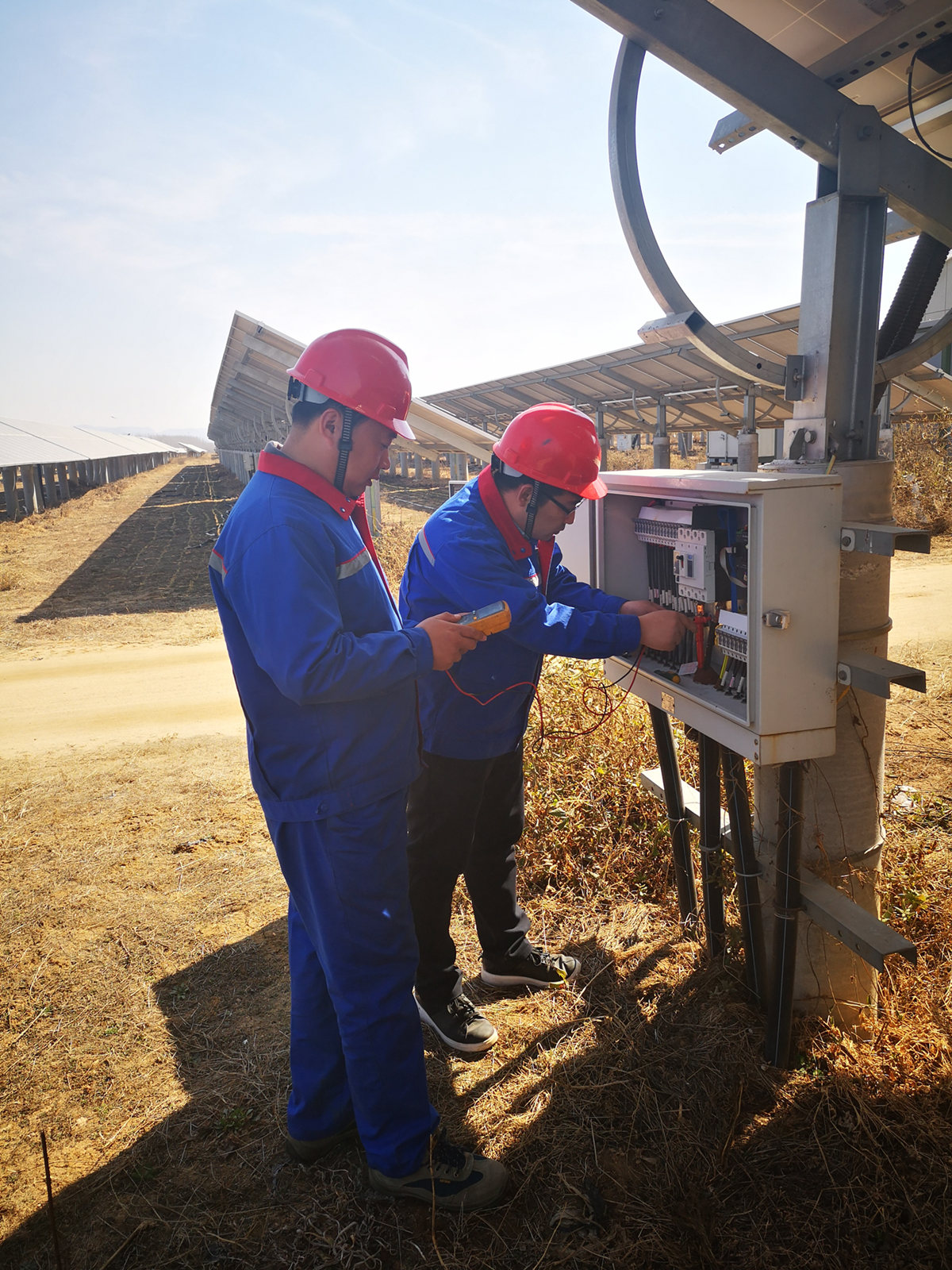 电站站长是一个集“脏、苦、累”于一身的岗位,但是电站工作却是一个标准高、要求高、把关严的工作。光伏电站日常运维包括:电站定期安全巡检;光伏电池板定期清洗;设备故障及时维修和维护;水泥墩和支架检修等。作为站长,赵月军丝毫不敢懈怠,始终亲力亲为,严格把控工作的每一个阶段。