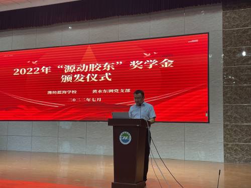 7月5日下午,黄水东调党支部联合潍坊蓝海学校举行了第二批“源动胶东”奖学金颁发仪式,对在2021-2022学年第二学期中荣获“源动胶东”奖学金的39名优秀学生进行表彰,活动在潍坊蓝海学校行政楼报告厅举行,黄水东调公司、潍坊蓝海学校教职工及在校学生共计1000余人参加仪式。